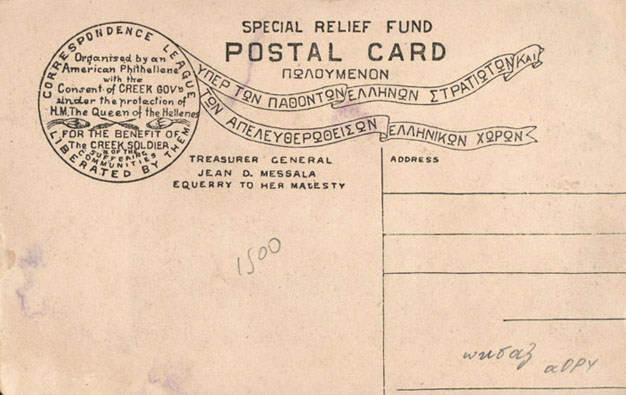 Αυτό το δελτάριο επωλείτο και τα κέρδη παραχωρούνταν «Υπέρ των παθόντων ελλήνων Στρατιωτών και των Απελευθερωθεισών Ελληνικών χωρών». Διαβάζουμε ότι η προσπάθεια οργανώθηκε από Έλληνες της Αμερικής, έχει την αναγνώριση της Ελληνικής Κυβέρνησης και την προστασία της Α. Μ. της βασιλίσσης των Ελλήνων.