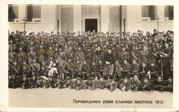 Ο στρατηγός Ricciotti Garibaldi με μικρή ομάδα εθελοντών και τους γιους του Peppino και Ricciotti junior έφθασαν στην Ελλάδα στις 20 Οκτωβρίου 1912, ενώ είχε ήδη συγκροτηθεί το πρώτο γαριβαλδινό σώμα.