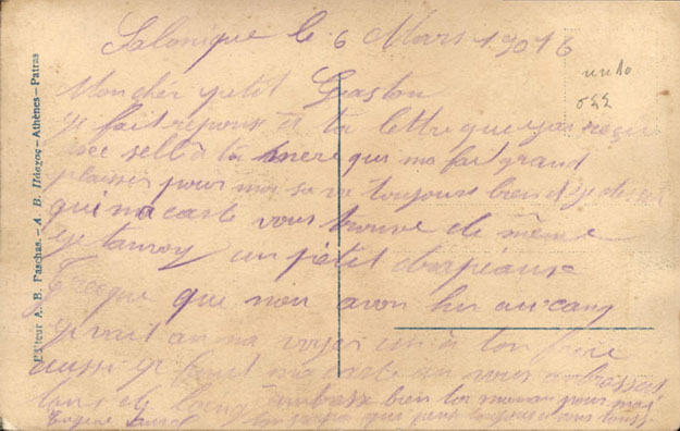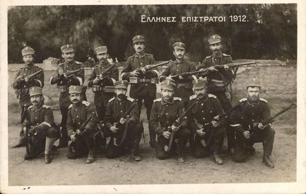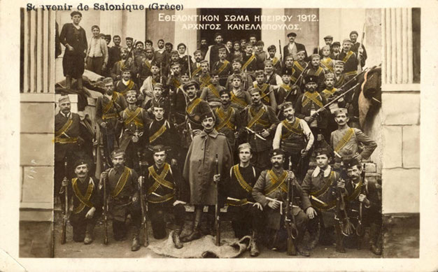 Επιστολικό δελτάριο. Διαστ. 88Χ138 χιλ. Στους Βαλκανικούς αγώνες και οι «επώνυμοι» πρωτοστάτησαν. Ακόμη και ανώτατοι κληρικοί, δήμαρχοι, βουλευτές πολέμησαν εθελοντικά ως απλοί στρατιώτες. Και οι δύο γιοι του Πρωθυπουργού Βενιζέλου, Κυριάκος (19 ετών) και Σοφοκλής (18 ετών που ήταν Εύελπις και Λοχίας)πολέμησαν ως εθελοντές. (Οι δύο γιοί του Ελευθερίου Βενιζέλου κατατάχθηκαν στην 7η Μεραρχία.)