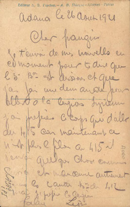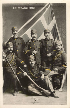Επιστολικό δελτάριο. Διαστ. 136Χ87 χιλ. Σε αντίθεση με αρκετούς μεταγενέστερους αγωνιστές που αξιοποίησαν την όποια πολεμική τους δράση, για να εισπράξουν συντάξεις, οι εθελοντές του 1912/1913 ήταν κάτι περισσότερο από ανιδιοτελείς. Αναφέρουμε χαρακτηριστικά πως το 1962 το Ελληνικό Δημόσιο θέλησε να δώσει τιμητική σύνταξη σε ορισμένους παλαίμαχους Κυπρίους του 1912. Εκείνοι απάντησαν: «Εμείς καταταγήκαμε ως εθελοντές πολεμιστές, για να υπερασπιστούμε τα δίκαια της Μεγάλης Μάνας Ελλάδας. Δε θέλουμε καμία ανταμοιβή.»