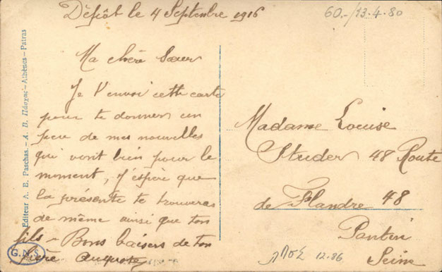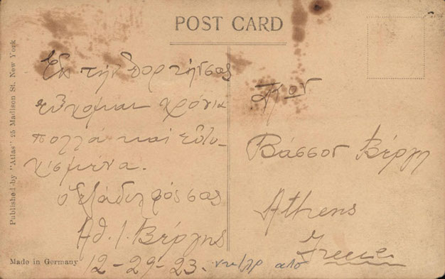 Πίσω όψη: Έκδοση: Α. Β. Πάσχας στην Αθήνα και Πάτρα.