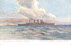 Απεικονίζει το θωρηκτό «Γ. Αβέρωφ» εν πλω.